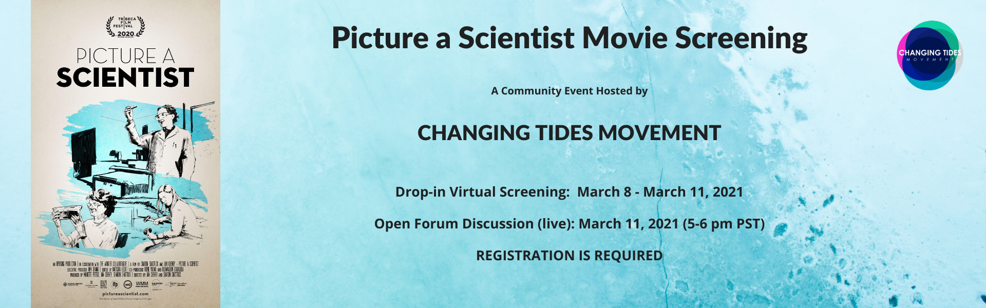 Picture a Scientist can be available to you for a 72 hour period between March 8 – March 11, 2021 if you register using the Eventbrite link below. Registrants can view Picture a Scientist at any point during the screening period. Registration ends on March 10, 2021. Each registrant will be sent a unique link and password to access the film ahead of the screening.